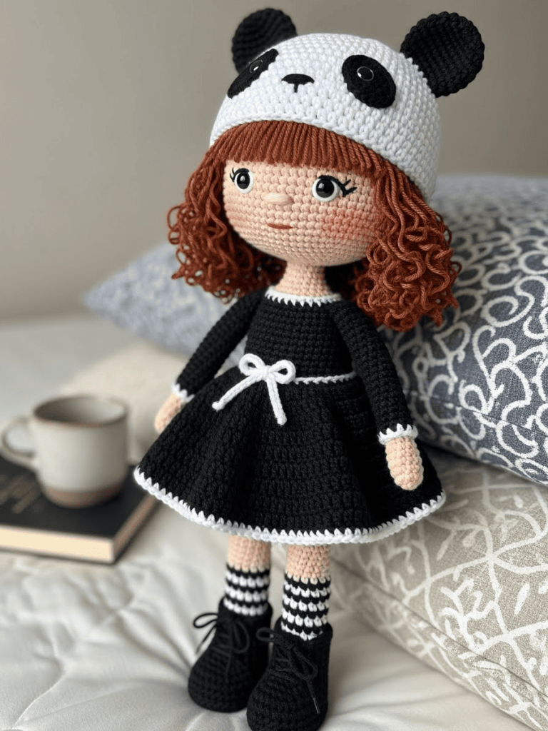 In the world of amigurumi, the difference between a toy and a keepsake often lies in the wardrobe. Pippa was born from the idea that accessories define the character. By designing a removable “Panda” hat and a detailed dress, we transform a classic doll base into a storytelling piece. This project focuses on “The Layered Look,” teaching you how to build dimension not just through stitch texture, but through independent clothing pieces that fit the doll perfectly. It is an exercise in precision and patience, but the result is a professional-grade creation you will be proud to display.