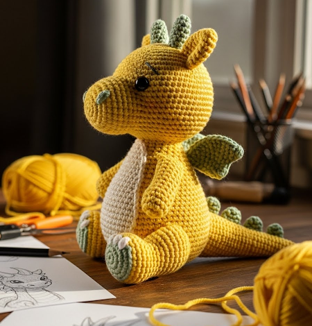My dearest creators, welcome back to the atelier. Today, the muse has visited us in the form of a creature not of fire and fury, but of sunshine and soft cotton. Meet Sparky, a little dragon whose only wish is to guard your heart (and perhaps your stash of yarn).