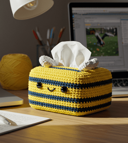Today, we’re doing just that. We are taking the humble tissue box and giving it a delightful personality. This Bumblebee Tissue Caddy isn’t just a cover; it’s a cheerful little friend for your desk, a whimsical guardian for your nightstand, and a sweet, handmade touch that says, “a little bit of happiness was made here.” So, let’s pick up our hooks and turn simple yarn into functional sunshine!