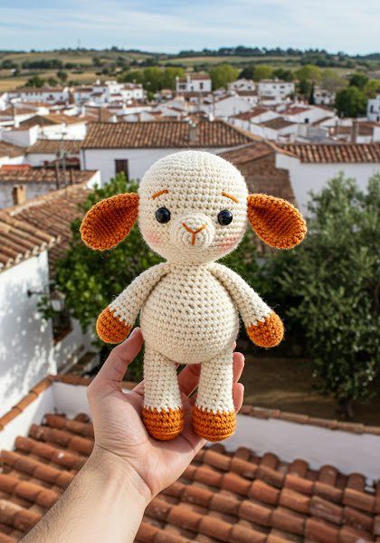 Barnaby’s design is a meditation on softness and simplicity. We embrace rounded forms that evoke a sense of cuddly youth, crafting a lamb that feels utterly huggable and safe. His slightly downcast gaze and the whimsical, almost floral tufts of orange “wool” on his head are not just details; they are brushstrokes in a portrait of gentle shyness. Every curve, every color choice, from the creamy white of his fleece to the blush pink of his overalls, has been chosen to evoke the pure, unassuming charm of a lamb finding comfort in its own quiet world. This is not just an amigurumi; it is a companion for gentle souls.