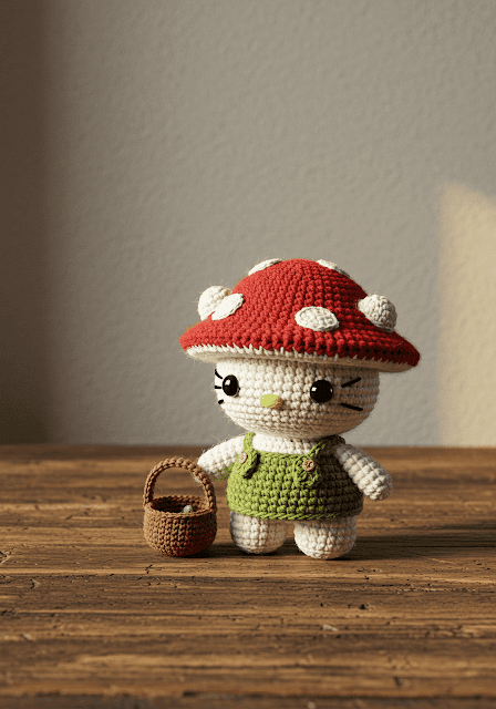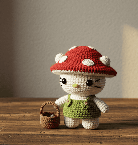 Hello, my dear friend, and welcome! It’s Patricia Poltera, and I am absolutely overjoyed to share this pattern with you today. There’s a special kind of magic in creating a character with a story, and our little Mushroom Forager Hello Kitty is brimming with woodland charm. From her sweet moss-green dress to her darling (and removable!) mushroom cap, every detail is designed to spark joy.