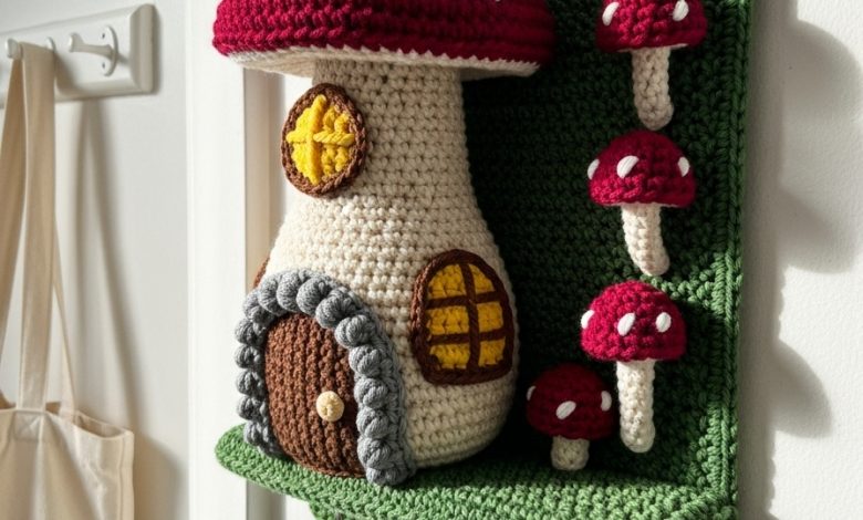 Most crochet decor sits on a shelf collecting dust. This project earns its keep. We are tapping into the “Functional Decor” market—items that serve a purpose while looking beautiful. By wrapping a standard wooden plank or key rack in our crocheted “turf,” we create a stable platform that allows the side mushrooms to stand proudly on their own stems, rather than floating awkwardly in mid-air. It is practical magic.