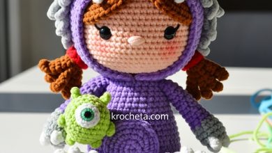 Round 20 to 23: sc in each st around (60) – 4 rounds. Artisan’s Note: Place safety eyes between rounds 17 and 18, exactly 11 stitches apart. Notice how low they sit to emphasize that sweet, youthful gaze.