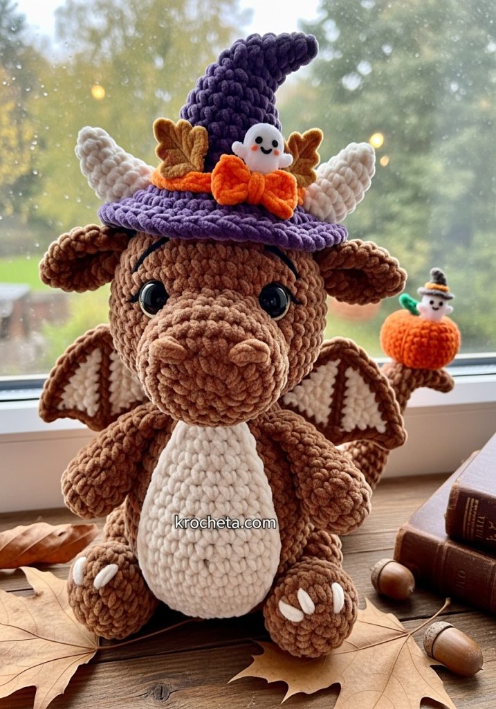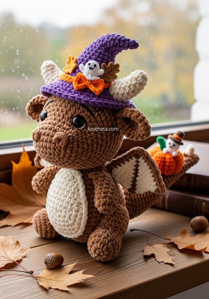 This harvest dragon project is a celebration of texture and storytelling. We are creating a piece that speaks of crisp autumn air and magical evenings. The chunky chenille yarn works wonderfully here, providing that essential, irresistible softness. When you craft pieces with such rich accessories—like the detailed witch hat and the miniature pumpkin companion—you elevate a simple toy into a true artisan collectible. This guide is designed to help you master those adorable, chubby proportions while keeping the features low and sweet for that perfect innocent gaze.