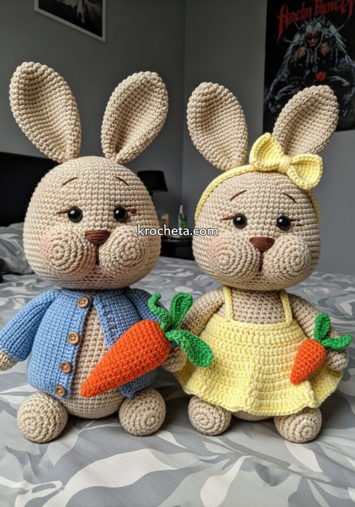 There is a profound comfort in classic storybook characters. With Peter and Penny, we capture that quiet, nostalgic magic through deliberate design. Notice how their eyes sit low and wide on their oversized heads, creating a gaze of pure innocence. Their bodies are delightfully soft and plump, avoiding any harsh angles. This specific proportion is what elevates a simple toy into a cherished companion. As we craft these pieces for your collection at krocheta.com, we are not just making toys; we are creating heirlooms.