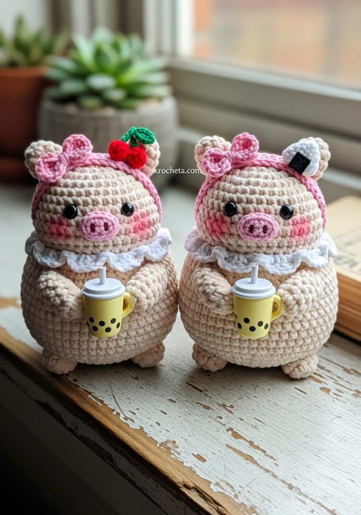✨ Other Materials: 8mm safety eyes, small two-hole pink button (for snout), stiff white craft wire or thick yarn (for straw), soft pink blush and a brush, polyester fiberfill, yarn needle, and a stitch marker.