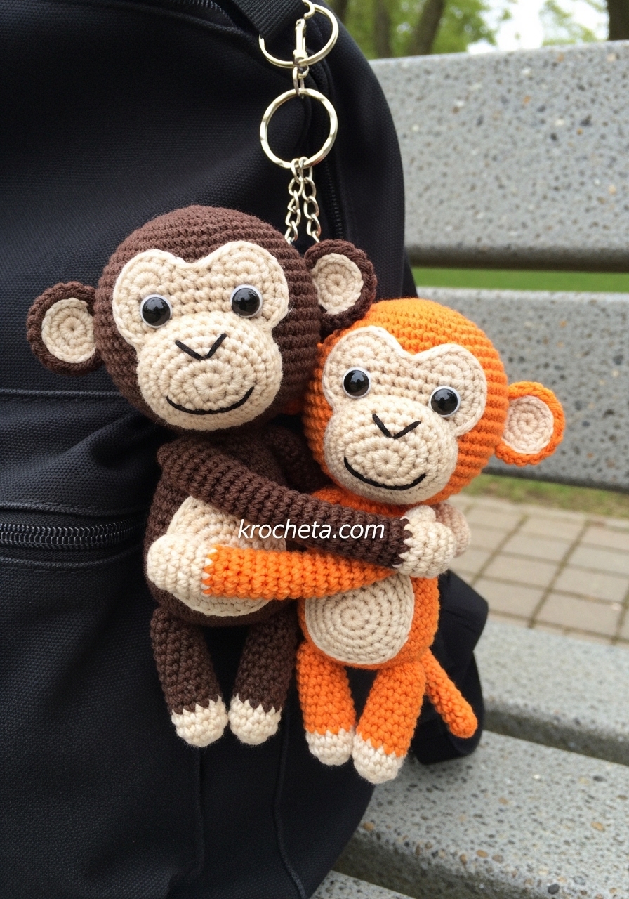 Sew the legs to the bottom of the bodies, positioned over Rounds 4 through 6, angled slightly forward so the monkeys can sit flat.
