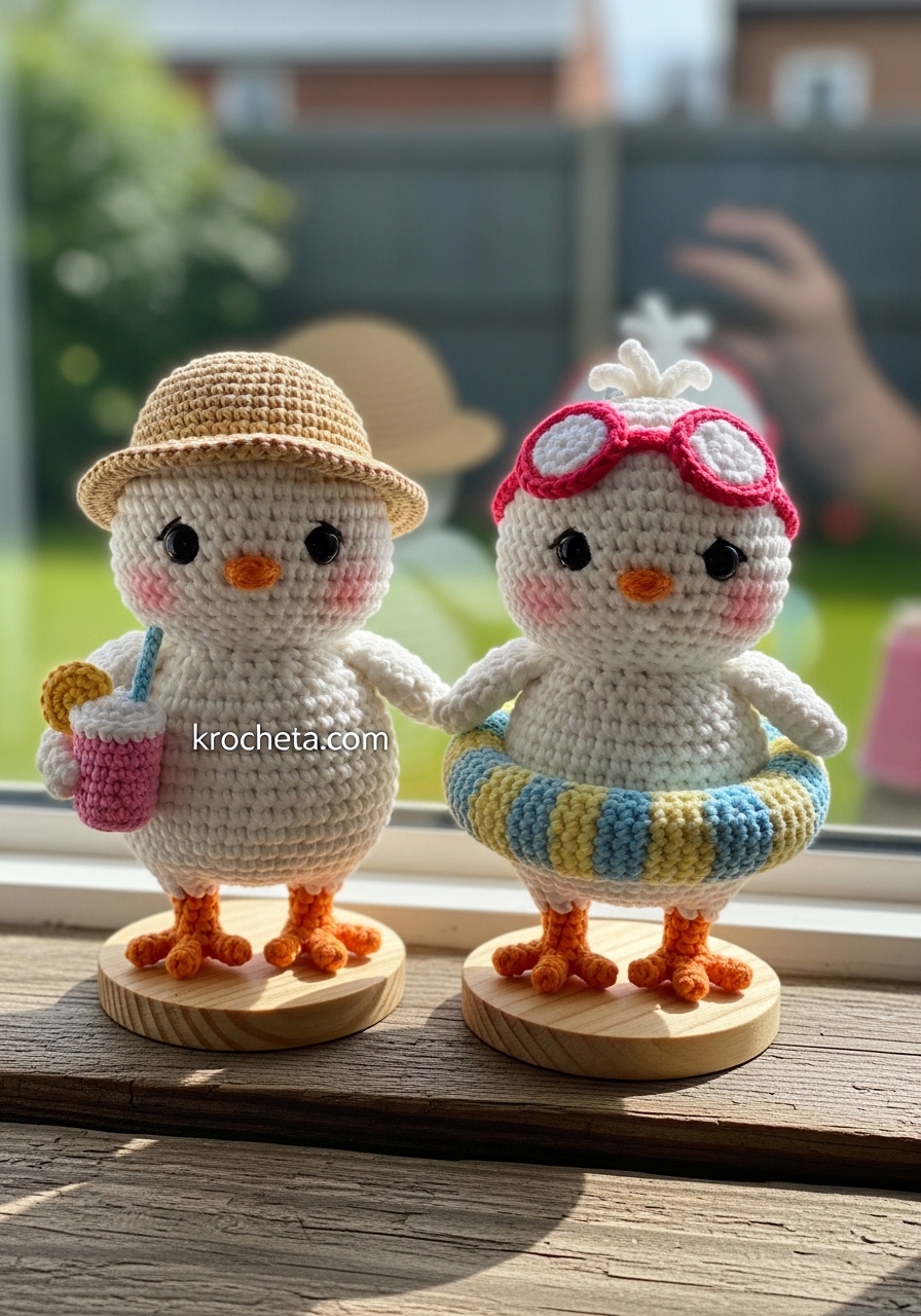 Greetings once again, dear creator. The blueprint is confirmed, and the mathematics are securely in place. We are building figures of approximately 14 centimeters, honoring the scale you previously envisioned while capturing the robust, rounded charm of our summer chicks. The geometry of their cheeks requires absolute focus. Pay close attention to Rounds 13 through 17; this is where the magic of asymmetrical shaping occurs.