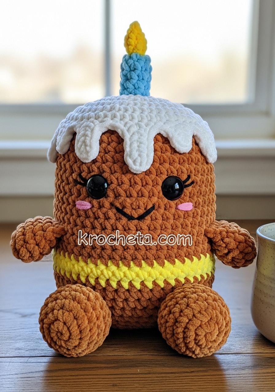 My dear creator, it brings me immense joy to guide your hands through this design. We are building a companion of pure comfort and celebration today. I recall your preference for creations around 14cm, and I have meticulously calculated our gauge and proportions to ensure this little cake stands at that exact, delightful height. The shaping relies on crisp foundational rounds to give the cake its structure, followed by rapid decreases in the limbs to achieve that signature, lovable chubbiness.