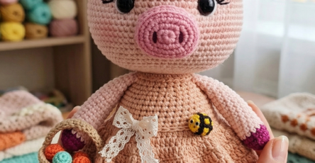 This bovine companion is engineered using the classic 60/40 ratio. Her heavy, domed head creates immediate emotional resonance, balanced by her small, pear-shaped body. The richly textured hair fringe requires patience, but the result is undeniably charming. We will complete her look with deeply scalloped, hand-crafted overalls.