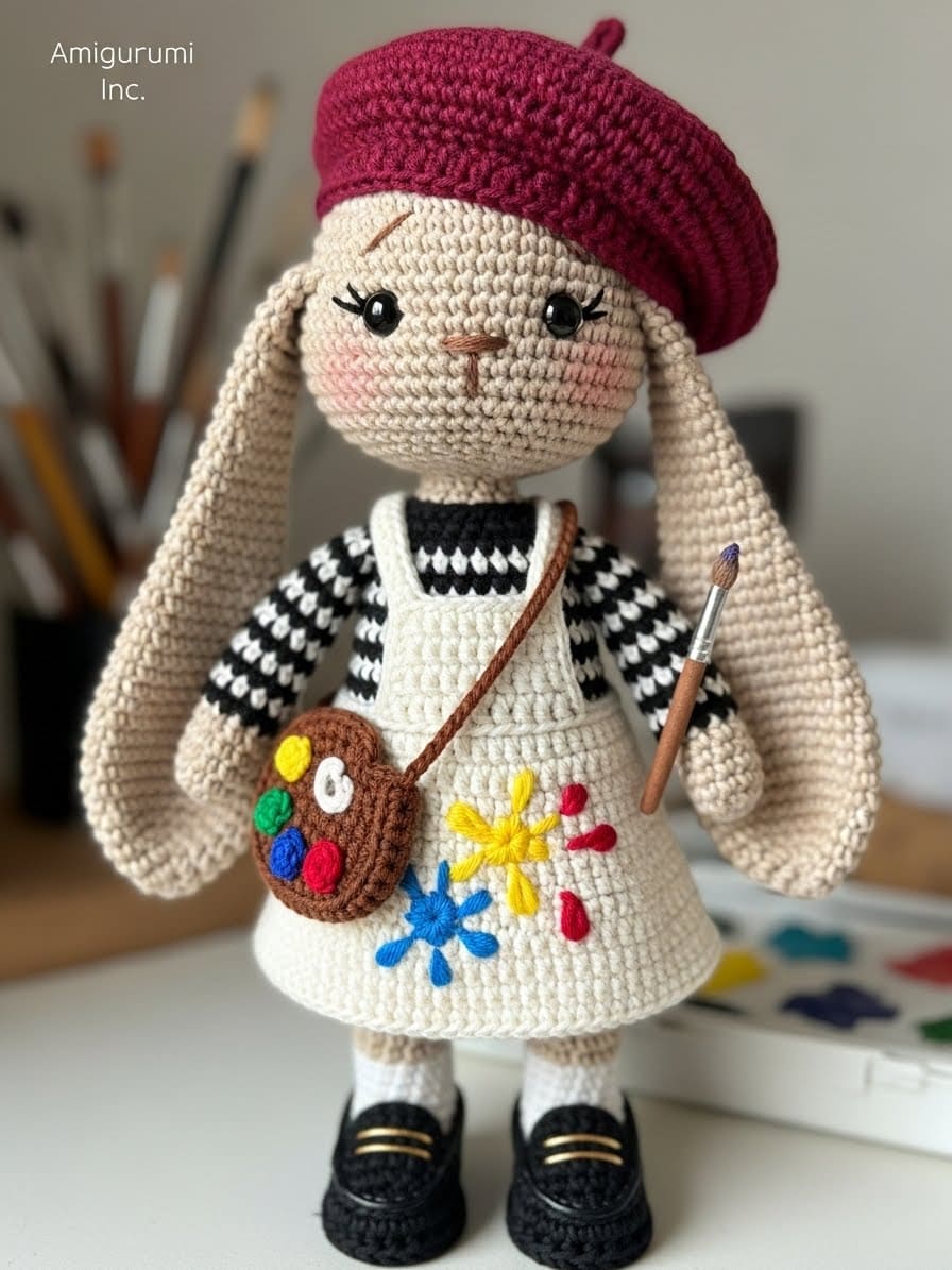 Belle the Painter Bunny Amigurumi Pattern – A Creative Artist Doll Project