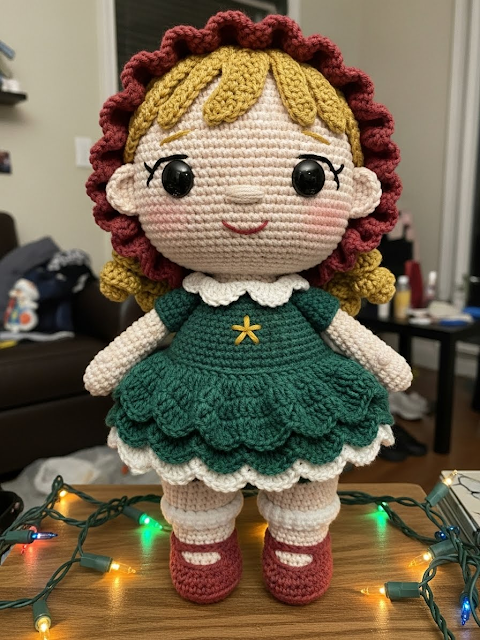 Christmas Doll Amigurumi Pattern with Bonnet and Layered Dress