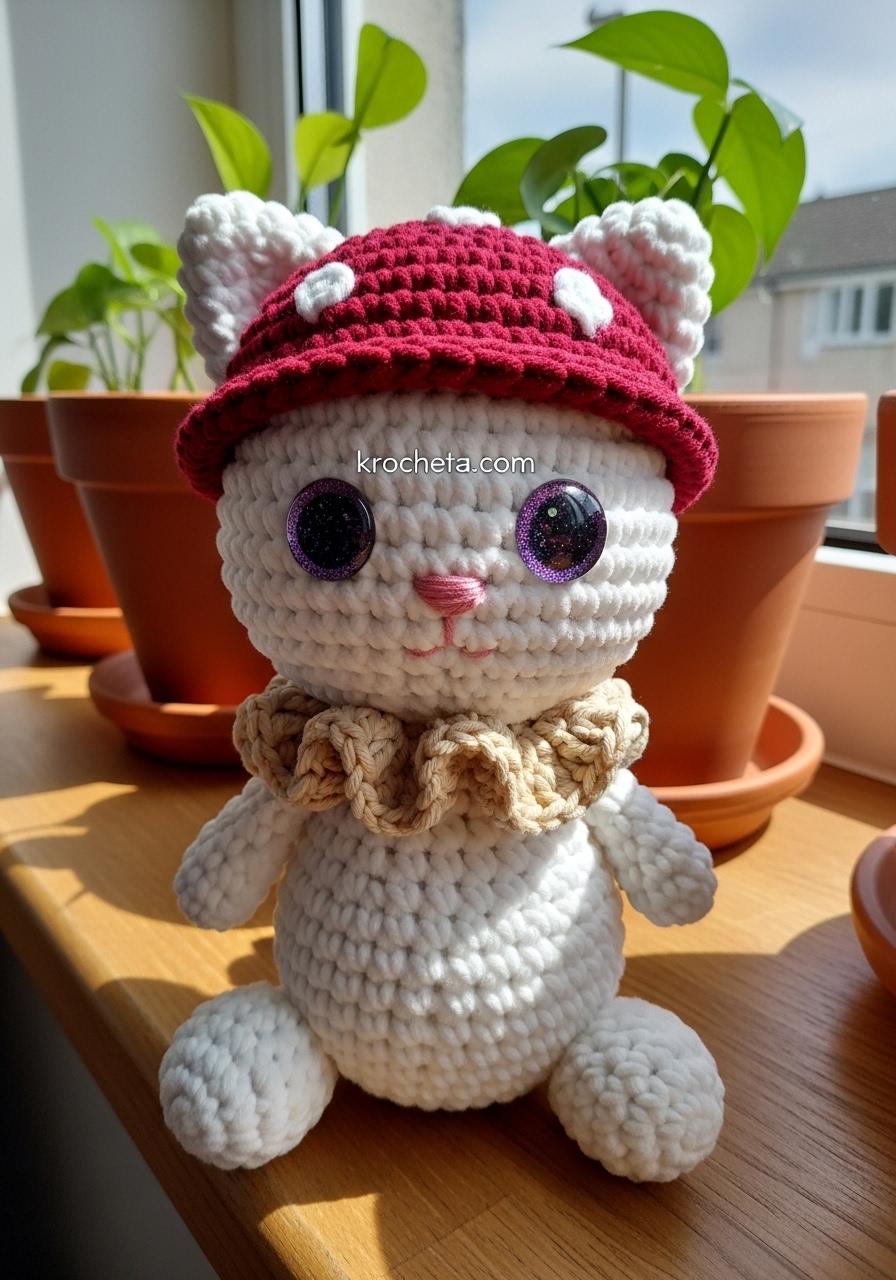 Mushroom Kitten Amigurumi Pattern – Easy Chenille Crochet Guide
